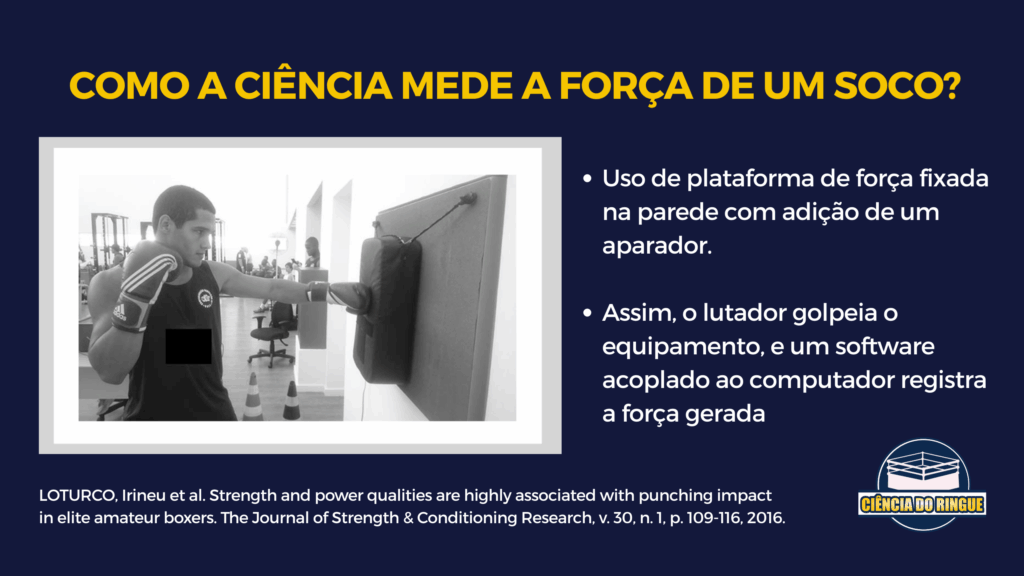 Para estudar golpes, os cientistas adaptam a plataforma, fixando-a verticalmente em uma parede e adicionando um aparador acolchoado sobre sua superfície para evitar lesões por impacto. Assim, o lutador golpeia o equipamento, e um software acoplado ao computador registra a força gerada.